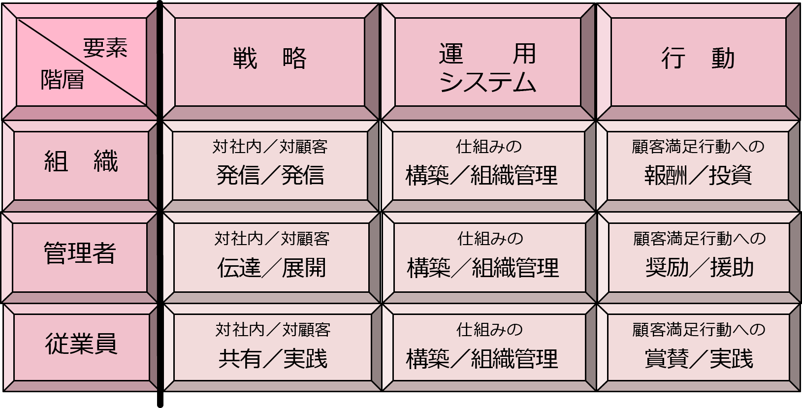 CS(Customer Satisfaction)は80年代後半に経営課題として取り上げられ、着実に企業活動として根づいてきていますが、近年においてはCRM(Customer Relationship Management)に対する注目の高まりもあり、その重要性はさらに増していると言えます。顧客満足の向上は、組織全体の重要課題であり、組織のトップから担当部門、担当者に至るまでが一致協力して取り組む必要があります。そのためには、かけ声やスローガンだけでなく、明確な戦略を示して組織全体に浸透させ、実効性のある仕組みを 構築し、日々の行動への具現化を促進します。顧客満足向上の活動を行う上で、組織の強み・弱み(課題)を発見し、組織をCS重視に変革するための情報を提供します。